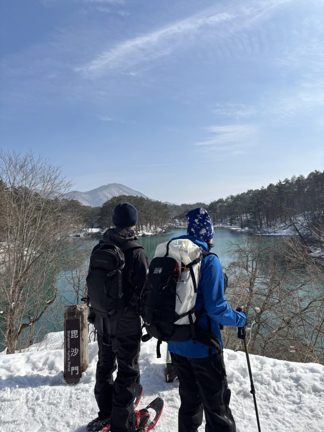 - 2026/2/18 雪景色にエメラルドグリーン色の毘沙門沼が映えて、青空の鮮やかなコントラストがより幻想的な世界のようでした。