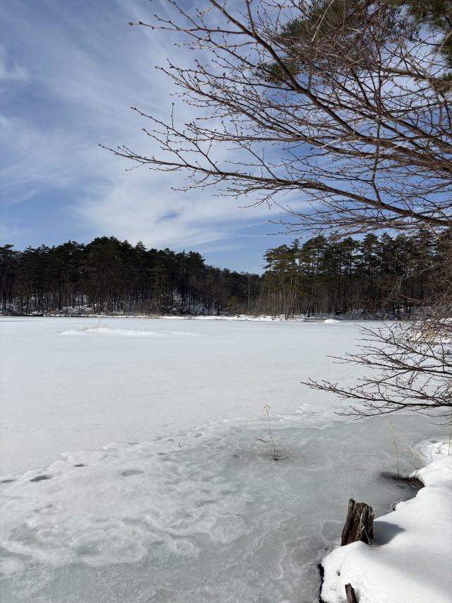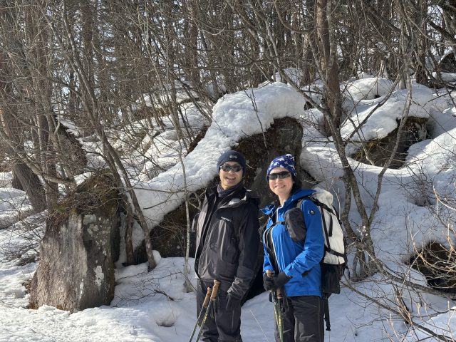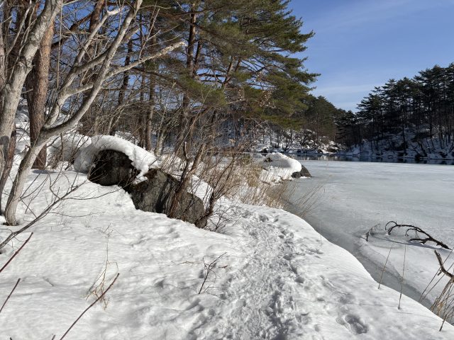 夏の季節と違って静寂な雰囲気漂う冬のトレッキングのようですね。しばらく積雪がなかったのでトレースもあり雪も締まっているの歩きやすしかと思います。