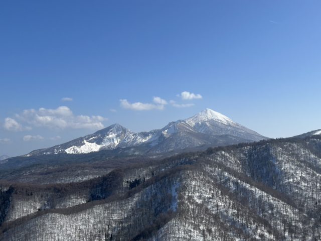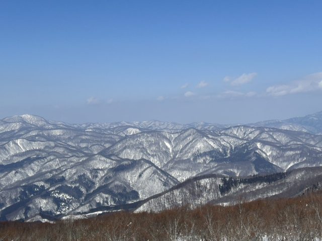 稜線上からは白銀に輝く飯豊連峰から北西部の山々が見渡せる絶景が広がっています。