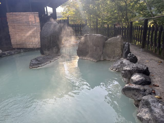 松川温泉♨️は、八幡平国立公園内にあり、ブナやナラの原生林に囲まれた宿です。乳白色の湯は豊富で、いつでも湯船が溢れていました。露天風呂から内風呂も大きいです。