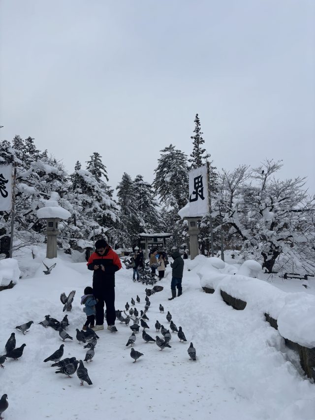 ロハスハイキング恒例となったライザワールドスキー場から登る冬の蔵王連峰ツアーにご参加いただきありがとうございます。今日は焼き肉さかので米沢牛を食べてから、上杉謙信ゆかりの地観光です。米沢市内もここ一週間で積雪があったようです。
