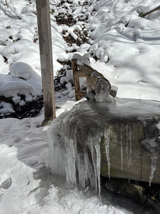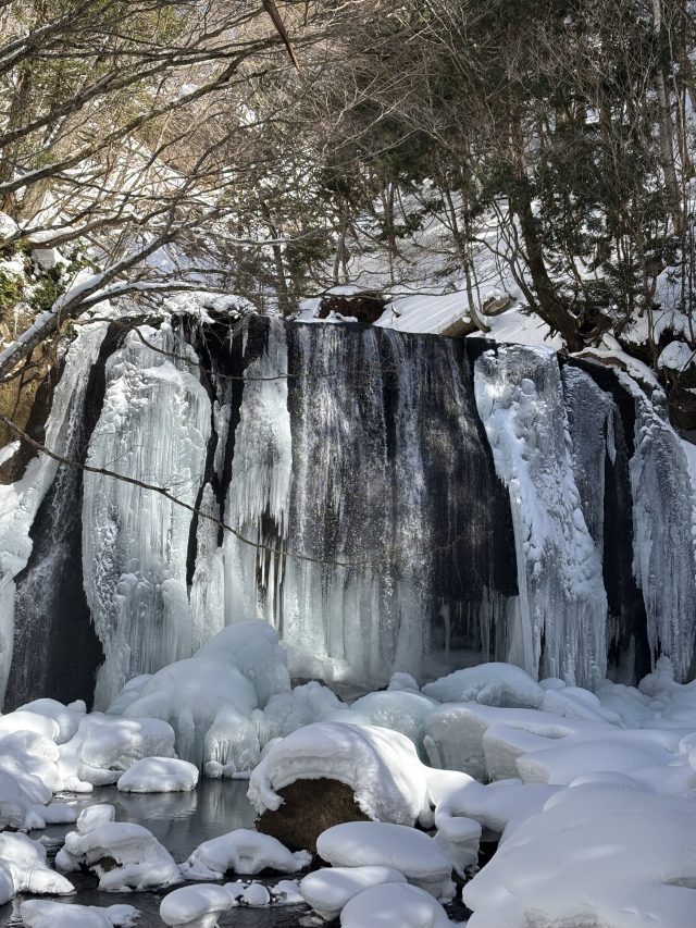 男滝は水量が多いせいか部分的に凍結していたが、女滝は完全に氷瀑しているようです。
