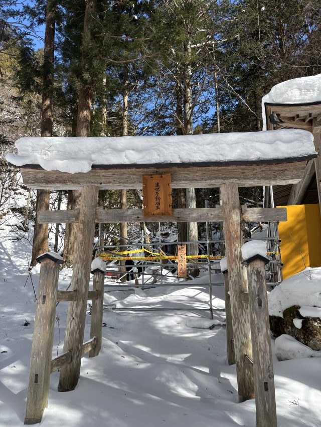 パワースポットでもある達沢不動滝は冬の撮影人気スポット。静かにそして力強く流れる滝からは、荘厳さが漂います。