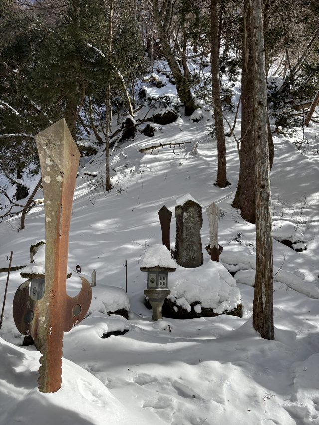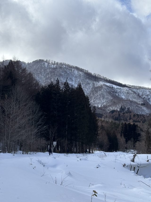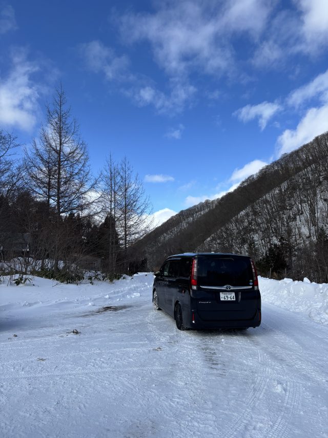 集落を過ぎたところ除雪がなくなります。夏場だったら達沢不動滝まで歩いて10分くらいですが、ここからだと40分くらいかかります。