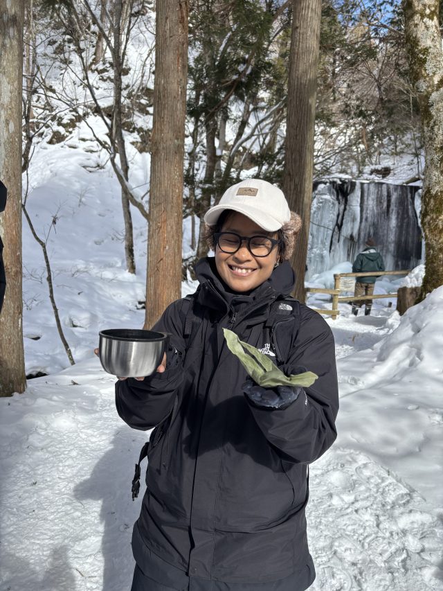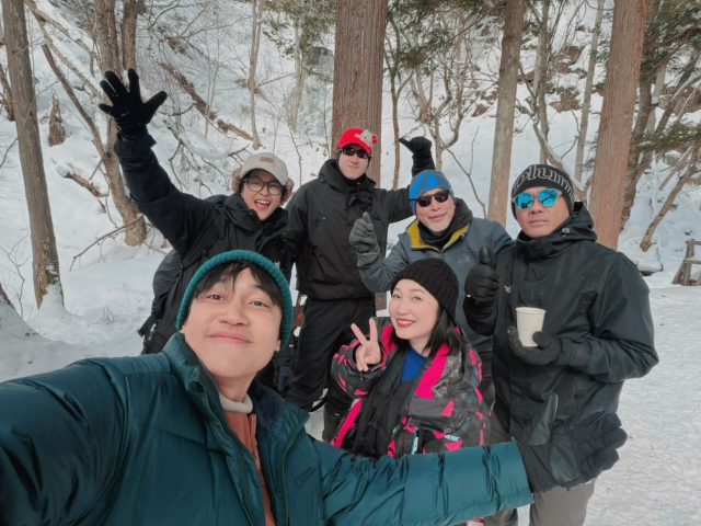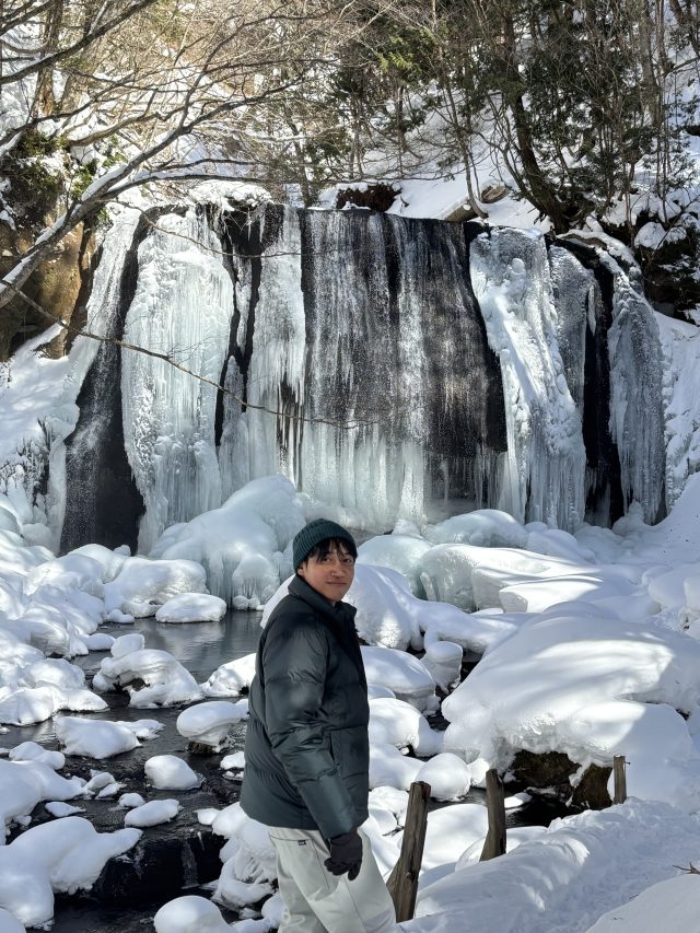 今日は沼尻高原ロッジに泊られた、タイのインフルエンサー達の案内で達沢不動滝まで行ってきました。